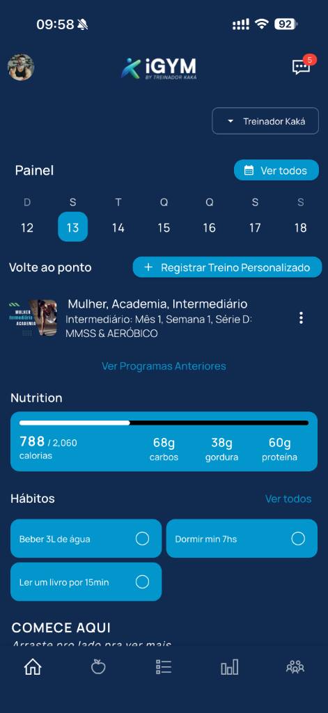 Fichas de treino pra academia & casa + dieta semi-personalizada + comunidade exclusiva com Kaká e Carol: tudo em um só app.